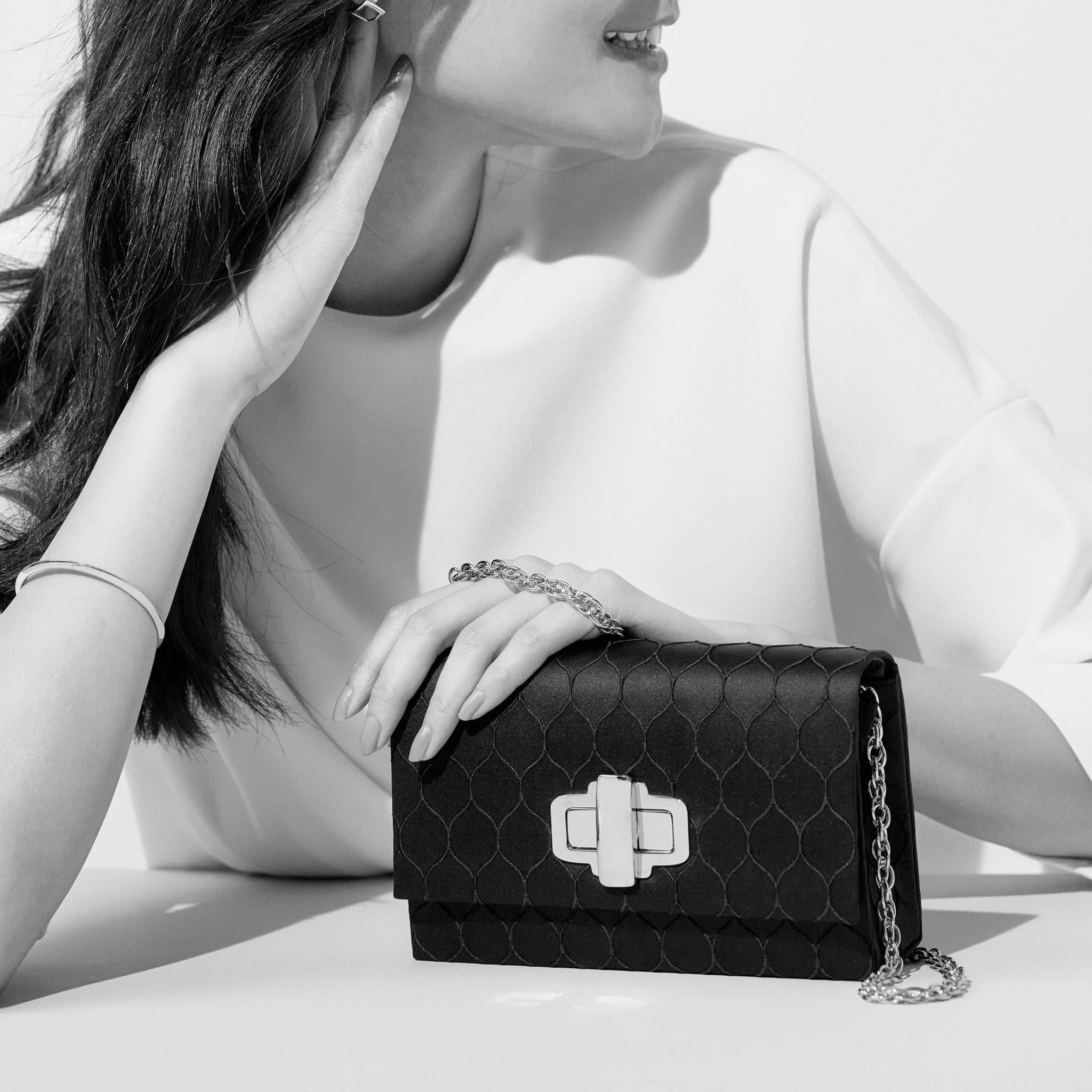 きめ細かなサテンに映えるクロスの金具がアクセントに。