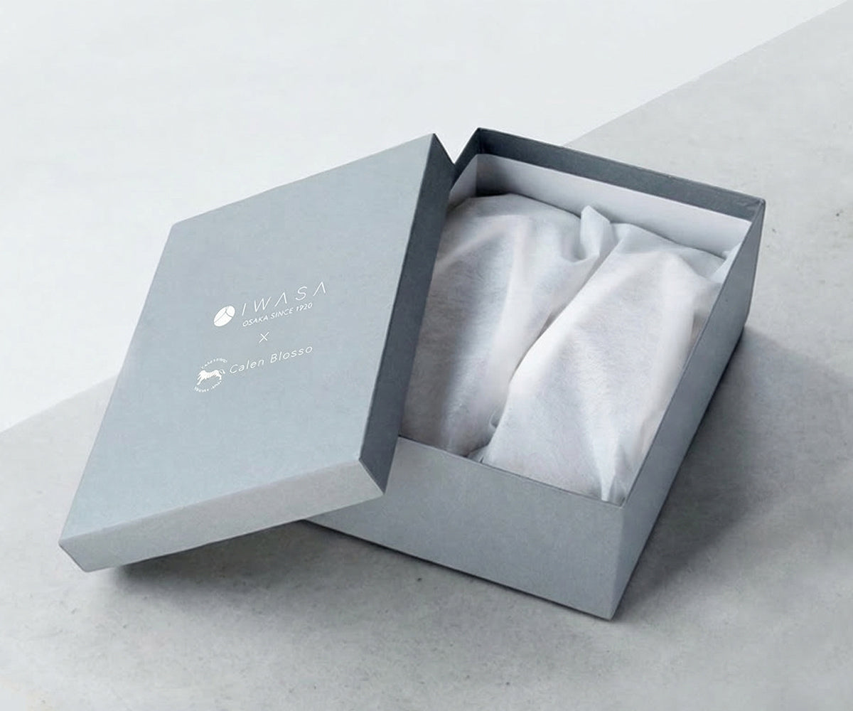IWASAの草履は、美しく包装し、マットなボックスに入れてお届けします。