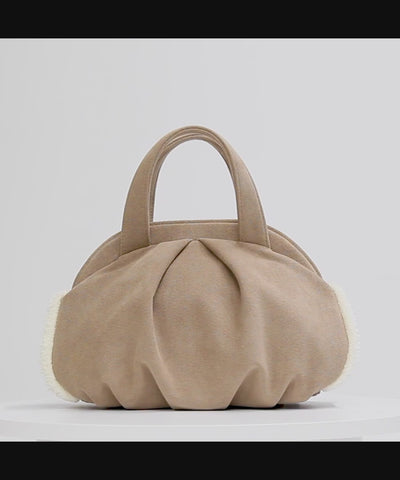 軽量でしなやかなスエード素材を用いた、肌触り抜群のバルーンバッグ。